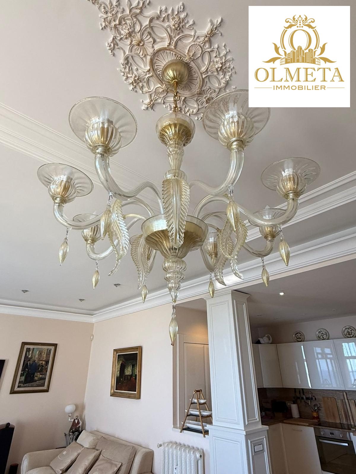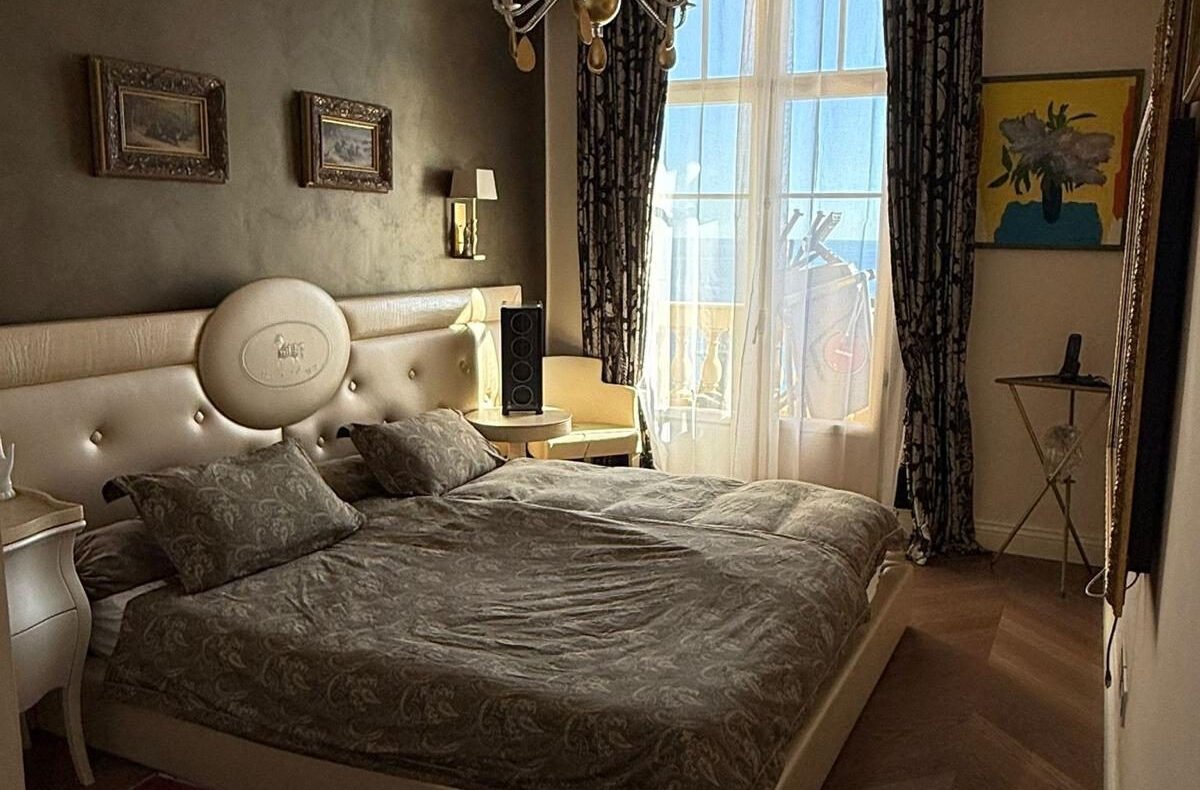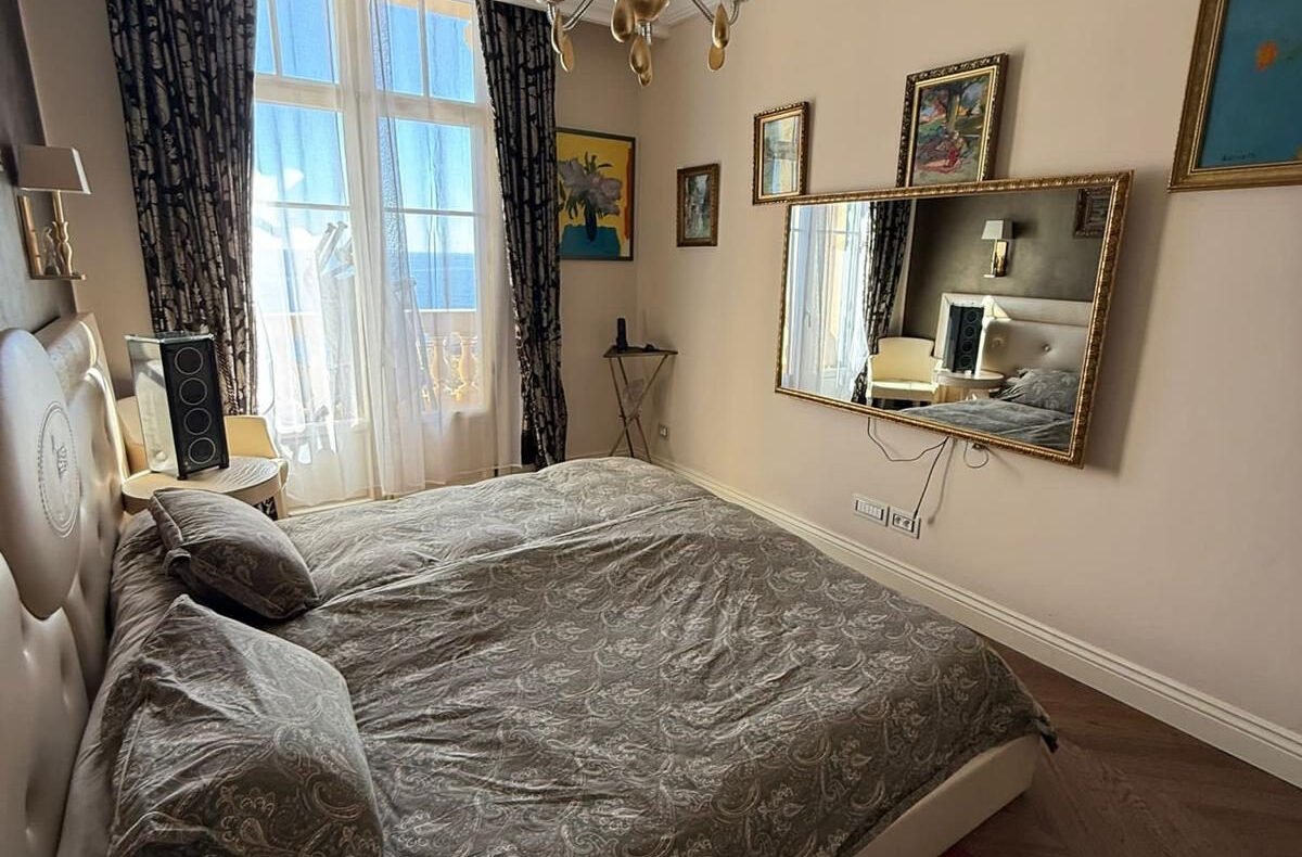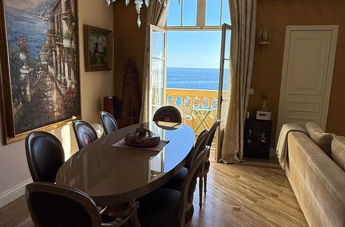 Au dernier étage d’un des plus prestigieux palais Belle Époque de Menton, entouré d’un parc arboré aux essences méditerranéennes. Cet appartement de 135 m² incarne l’art de vivre à la française, alliant avec grâce le charme d’antan au confort le plus moderne.