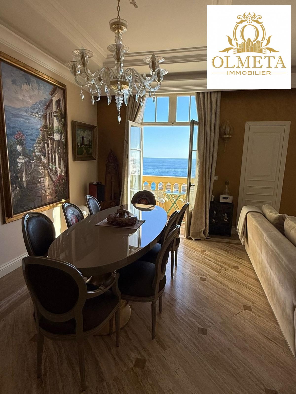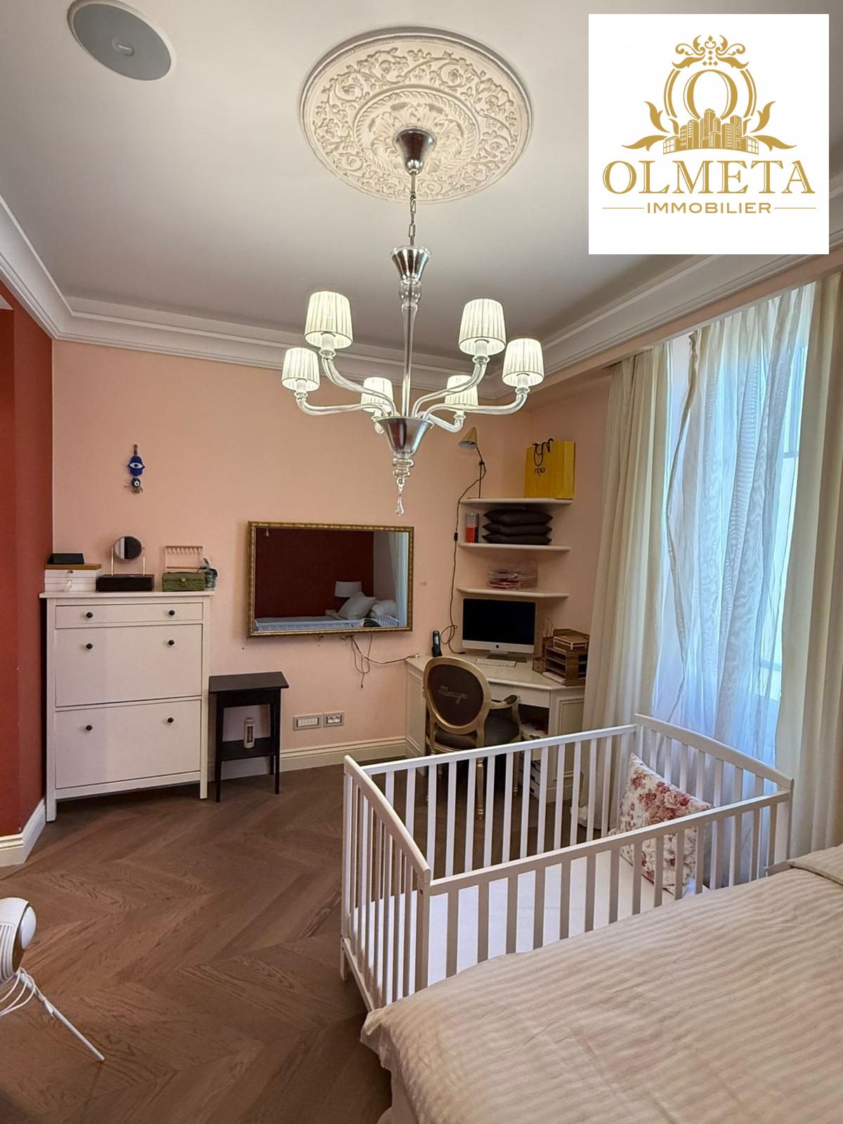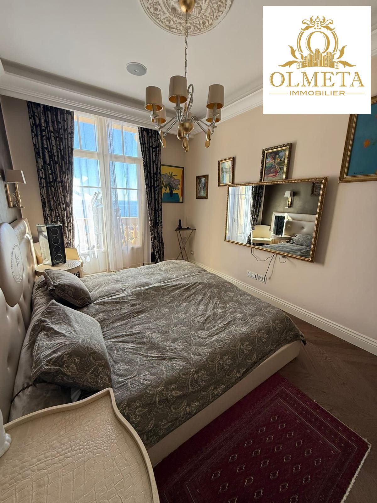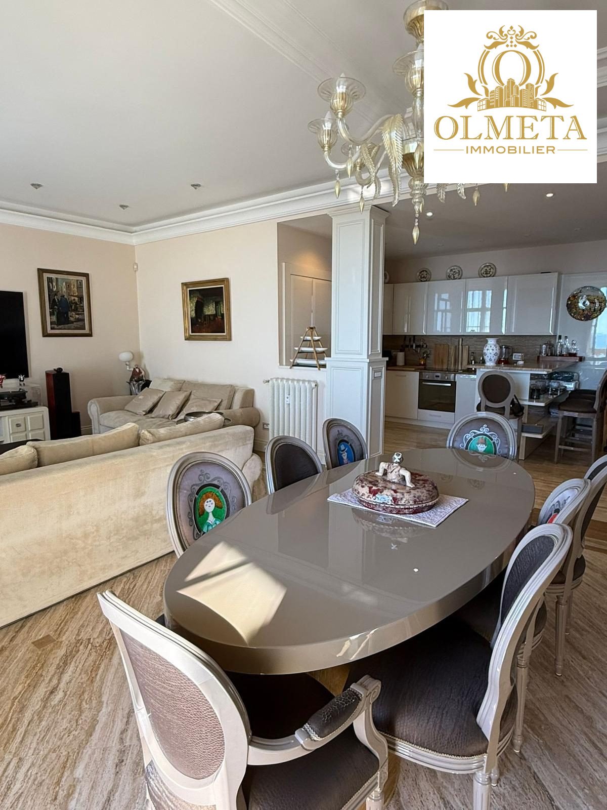 Au dernier étage d’un des plus prestigieux palais Belle Époque de Menton, entouré d’un parc arboré aux essences méditerranéennes. Cet appartement de 135 m² incarne l’art de vivre à la française, alliant avec grâce le charme d’antan au confort le plus moderne.