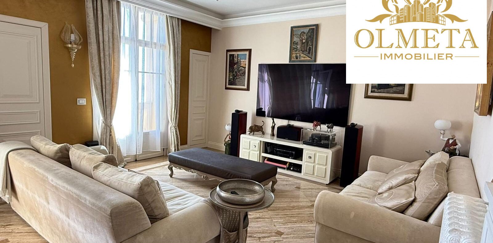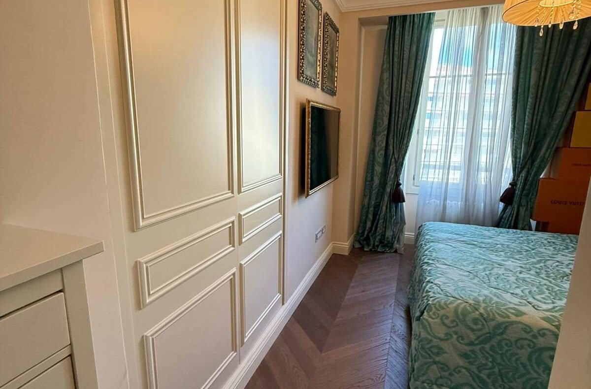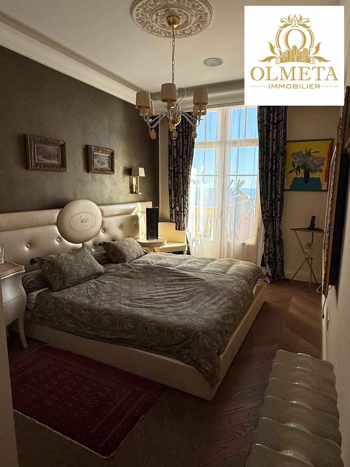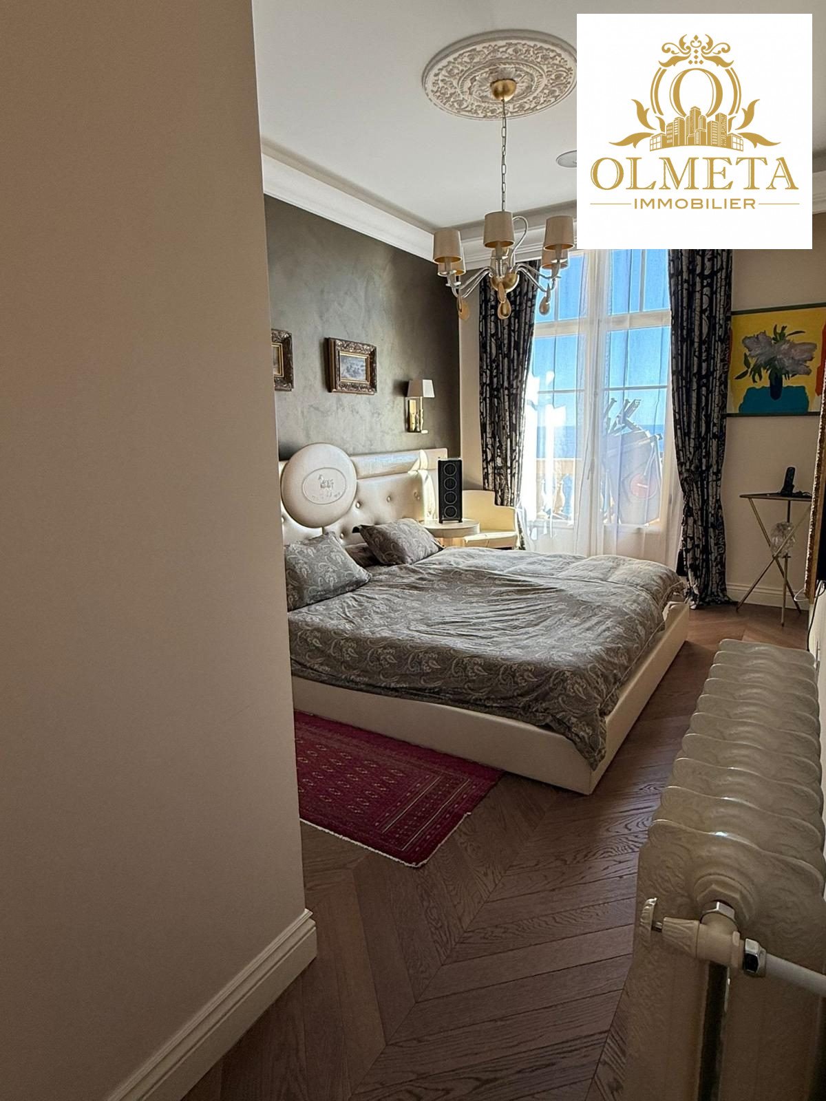 Au dernier étage d’un des plus prestigieux palais Belle Époque de Menton, entouré d’un parc arboré aux essences méditerranéennes. Cet appartement de 135 m² incarne l’art de vivre à la française, alliant avec grâce le charme d’antan au confort le plus moderne.