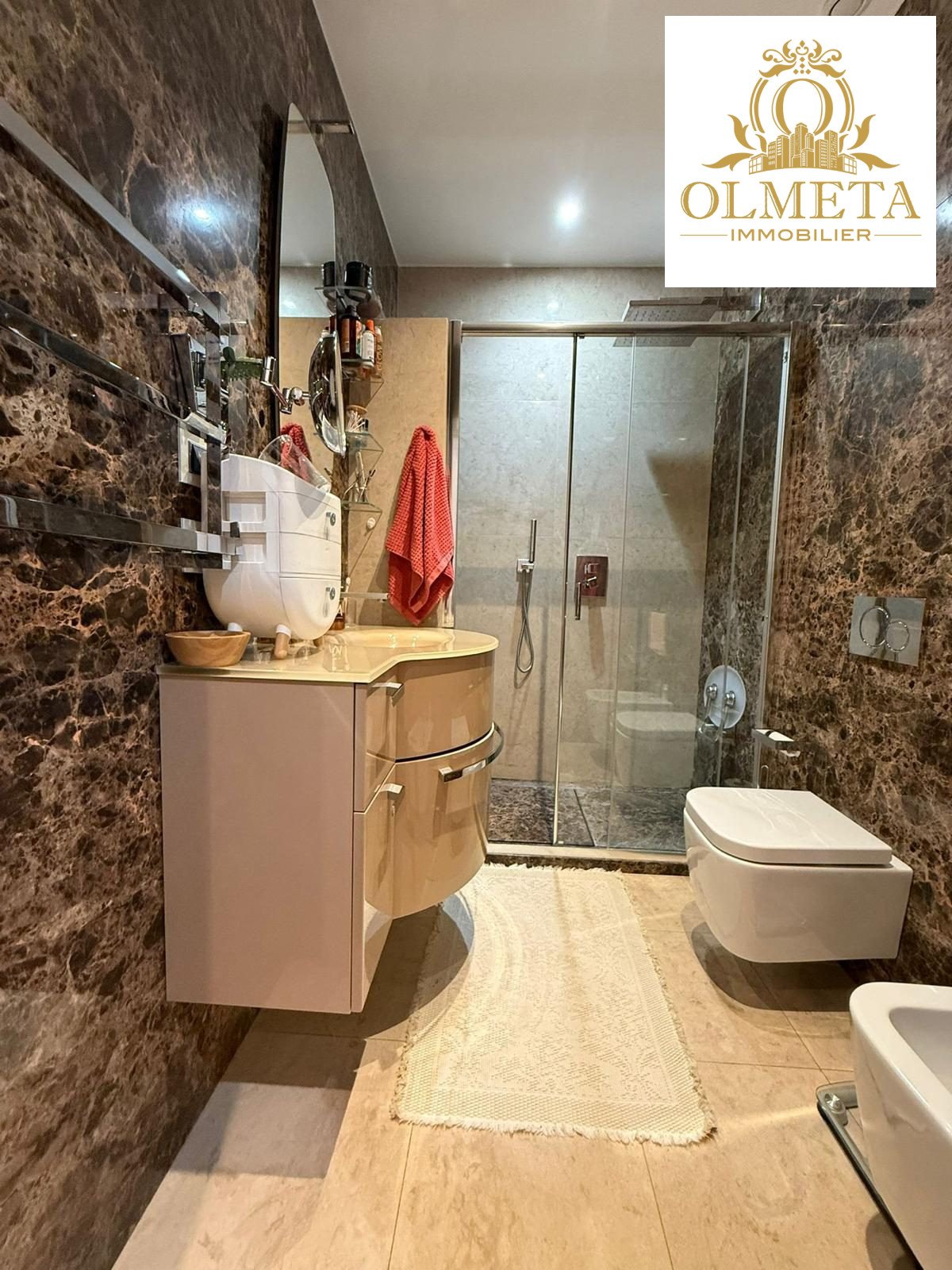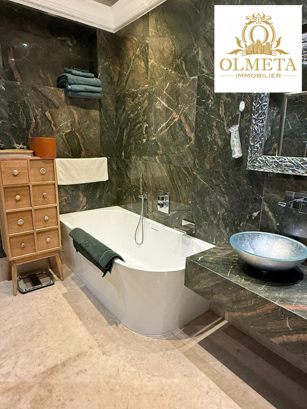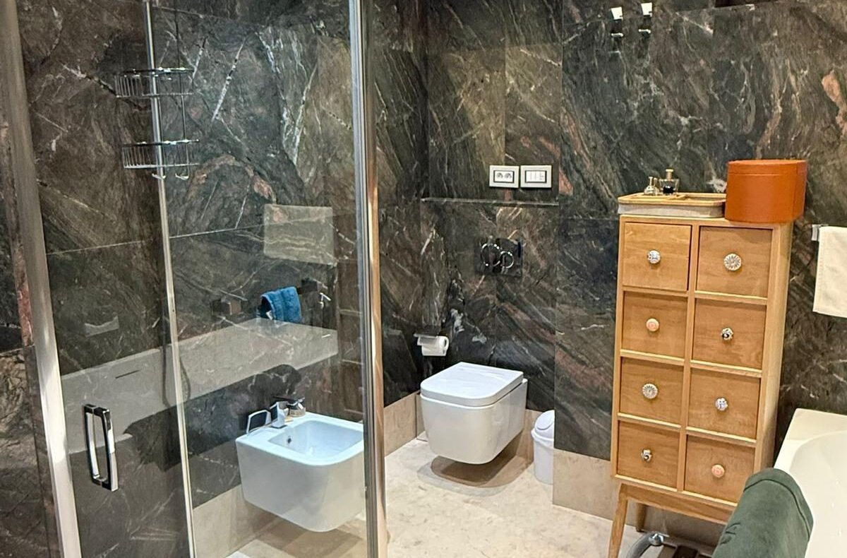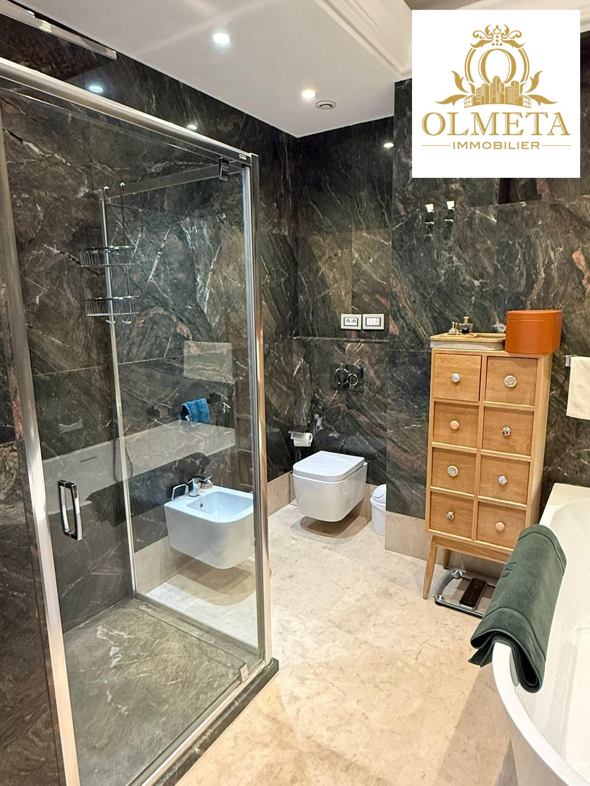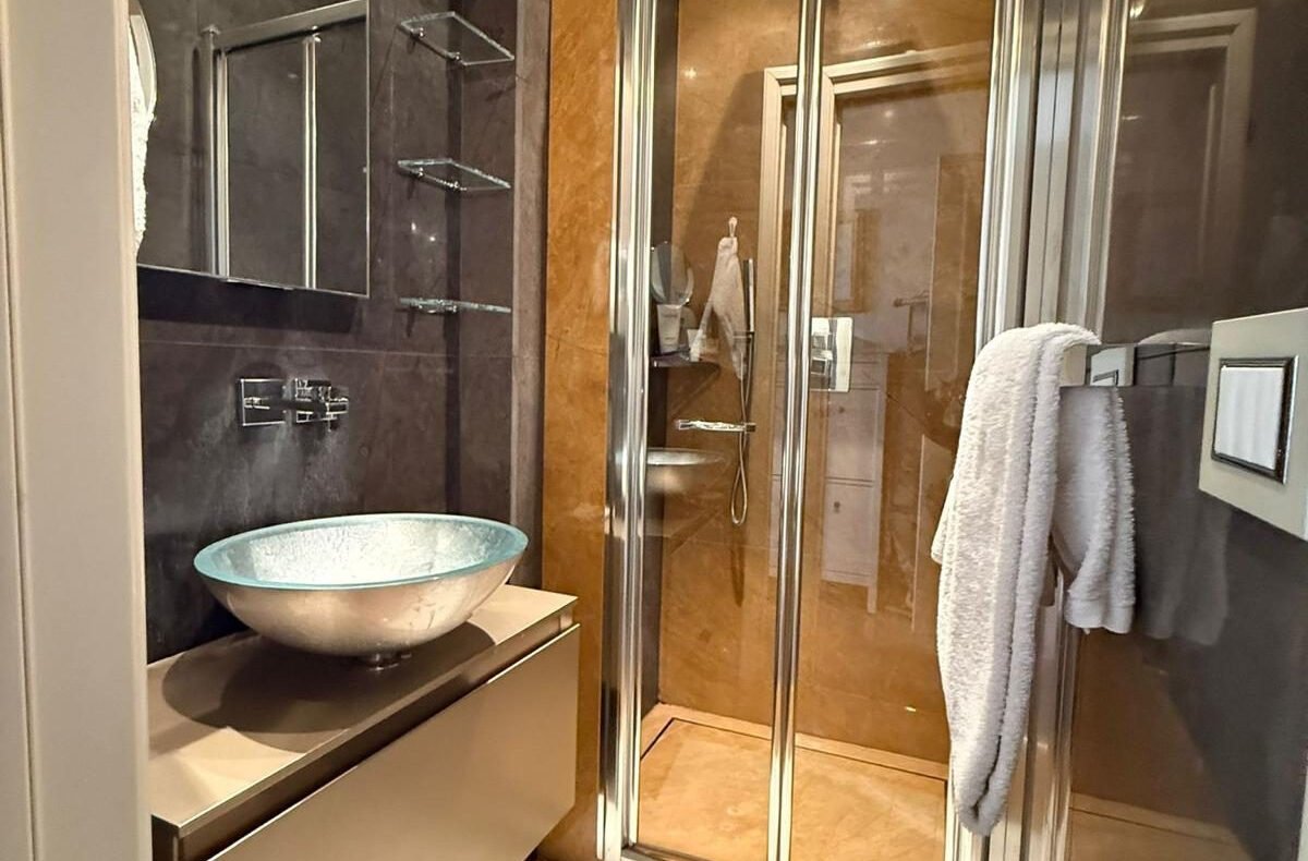 Un standing authentique et rare : Les matériaux nobles racontent ici une histoire d’excellence : pierres naturelles, bois précieux et finitions de haute manufacture. L’appartement, en excellent état, témoigne d’un entretien irréprochable et d’une conception intelligente.