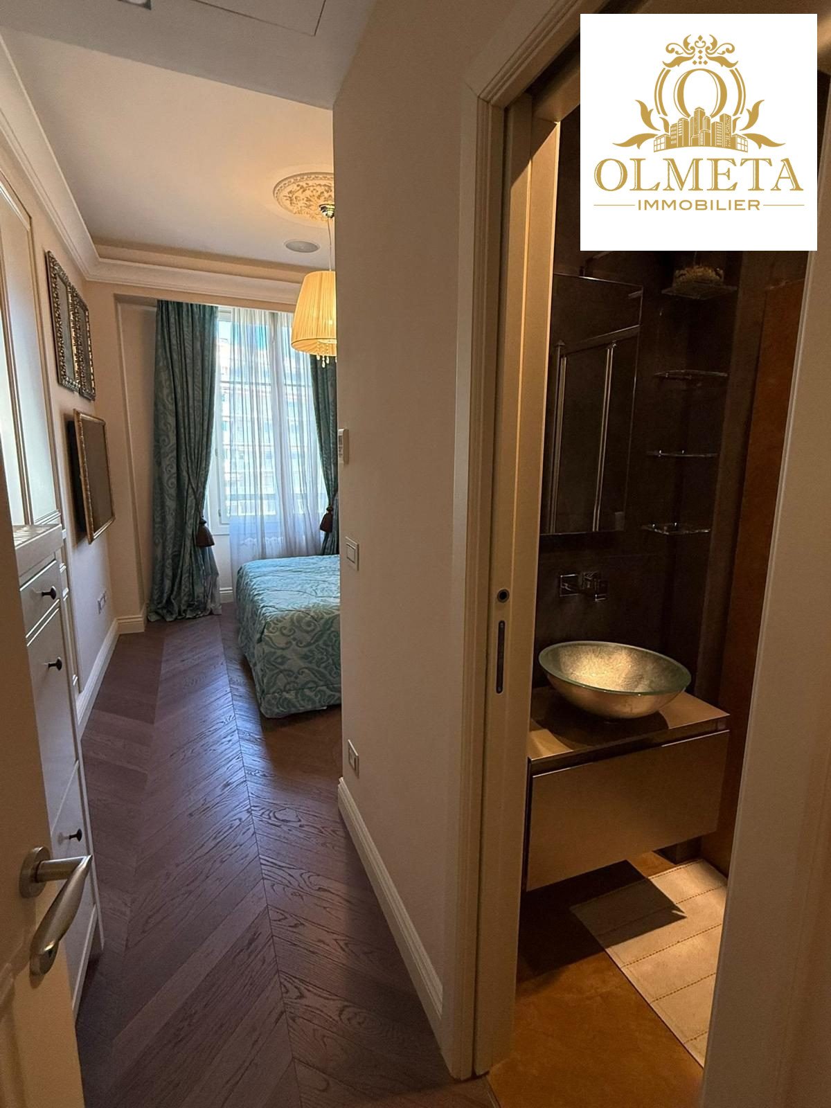 Au dernier étage d’un des plus prestigieux palais Belle Époque de Menton, entouré d’un parc arboré aux essences méditerranéennes. Cet appartement de 135 m² incarne l’art de vivre à la française, alliant avec grâce le charme d’antan au confort le plus moderne.