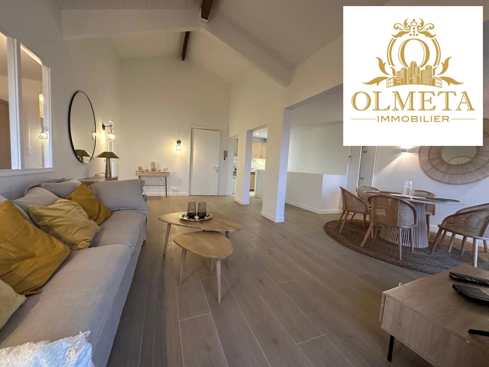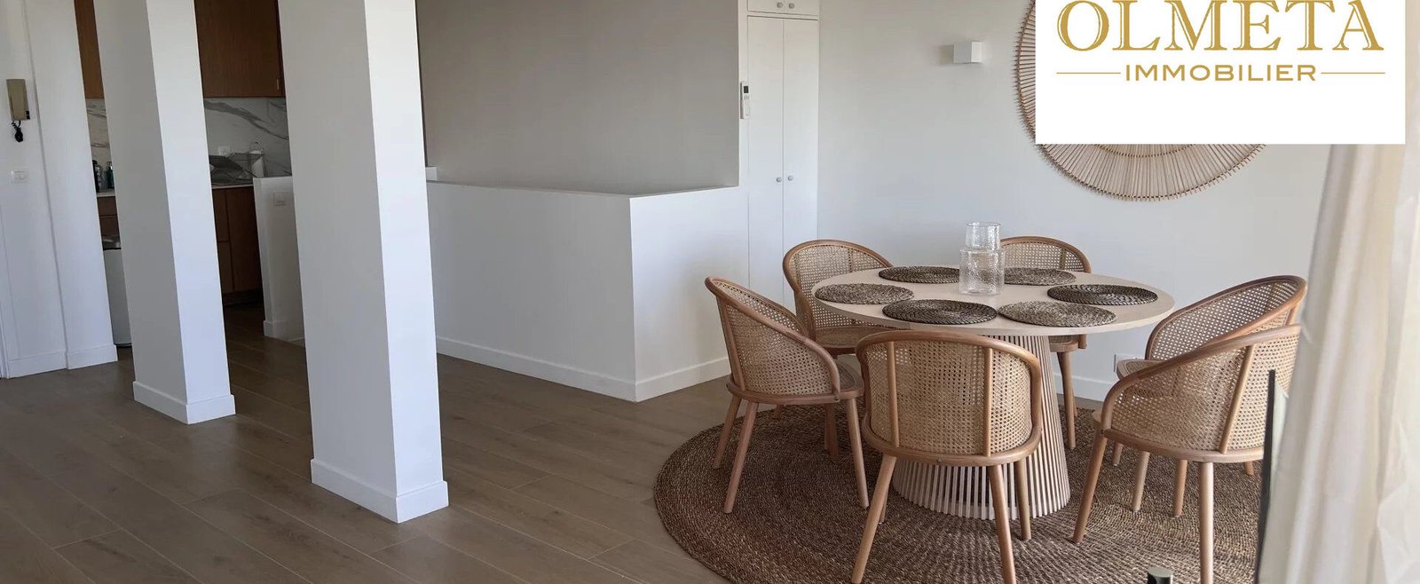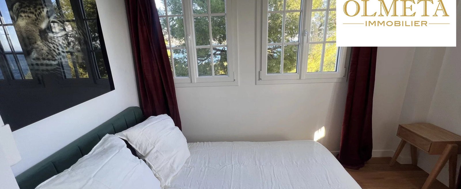 Dernier étage ! Bel appartement lumineux d’une surface totalisant 113 m2 sur deux niveaux avec terrasse de 17m2 et vue mer époustouflante, situé dans une résidence de standing « pavillon Sissi » sur la prestigieuse avenue Winston Churchill plateau du cap. L’appartement a été entièrement rénové avec soin. Le niveau principal supérieur offre un salon séjour cuisine ouverte équipée, et une belle chambre parentale avec salle de douche et wc indépendant le tout ouvert sur un large balcon à la vue mer époustouflante. Au niveau inférieur, deux chambres lumineuses, vue mer depuis toutes les fenêtres, une salle d’eau, un espace buanderie et une entrée indépendante. Un grand garage en sous-sol vient compléter cette offre. LOYER 5000 Euros CC Dépôt de garantie 4700 euros Honoraires résidence principale (13e/m2 Recherche locataire, constitution du dossier, visite, rédaction du bail + 3e/ m2 pour état des lieux entrée) Honoraires bail code civil – un mois de loyer